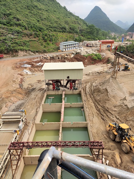 此洗沙場在洗沙廢水處理上走了很多彎路,脫泥設(shè)備先是采用真空盤式過濾機,結(jié)果處理量極小、濾餅含水率很高根本無法滿足生產(chǎn)需要;后來又采購一臺帶式過濾機,在脫泥過程濾帶經(jīng)常堵塞根本無法正常運行,處理量和濾餅含水率就更無從談起了。最后和我們公司技術(shù)人員接觸后,決定拆除現(xiàn)有脫泥設(shè)備、采用我們的自動廂式過濾機并改造現(xiàn)有的洗沙回收設(shè)備,雙方已達成共識,項目平穩(wěn)推進中。